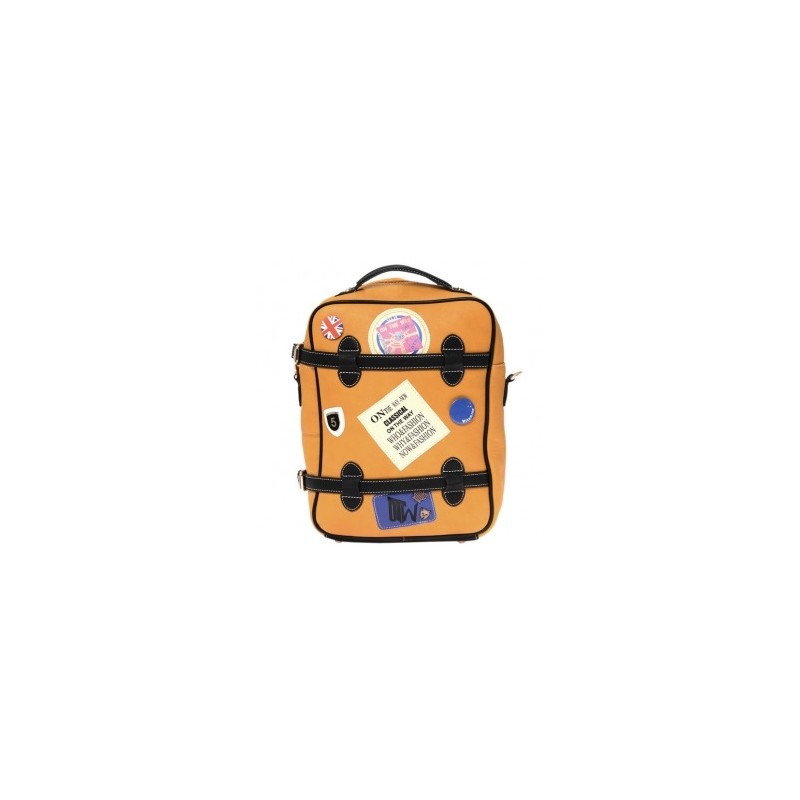 Да вы просто приглядитесь! Это не потому что у меня нет вариантов, у меня самые разные женские сумки, но бывает такая, что выстрелит и менять не хочется. У него сверху есть ручка, так что легко носить как маленький чемоданчик на ручку. А есть ремешки для того, чтобы носить на спине (это очень удобно в метро и на прогулке, надоело вечно плестись и руки заняты). Ношу его на спине и ничто не мешает мне на ходу сидеть на мобиле в интернете. Сшит яркий рюкзак из искусственной кожи оранжевого цвета с нашивкой из фиолетового и накладкой с надписью, как будто наклейкой на чемодане после приема багажа - такой кокетливый стиль. На нем еще есть значок британский и якобы какого-то колледжа. Очень похоже будто это сумка путешествующего студента европейского, если я поеду на каникулы заграницу или на море, возьму его с собой, очень у него дух «путешествующий». На самом деле рюкзачок весьма небольшой, ноутбук носить не выйдет, как раз для кошелька, пары маленьких балеток, нескольких гаджетов - а больше и не надо. Внутри есть как открытые карманы-разделения, так и один закрытый на специальной молнии, в нем я храню ценные вещи, чтобы труднее было открыть. Немного напрягает в метро носить на спине, потому что могут открыть и украсть что-то, не заметишь. Потому приходится снимать ( а не потому что мешает, он очень плоский, им никого не зацепишь и не поцарапаешь).